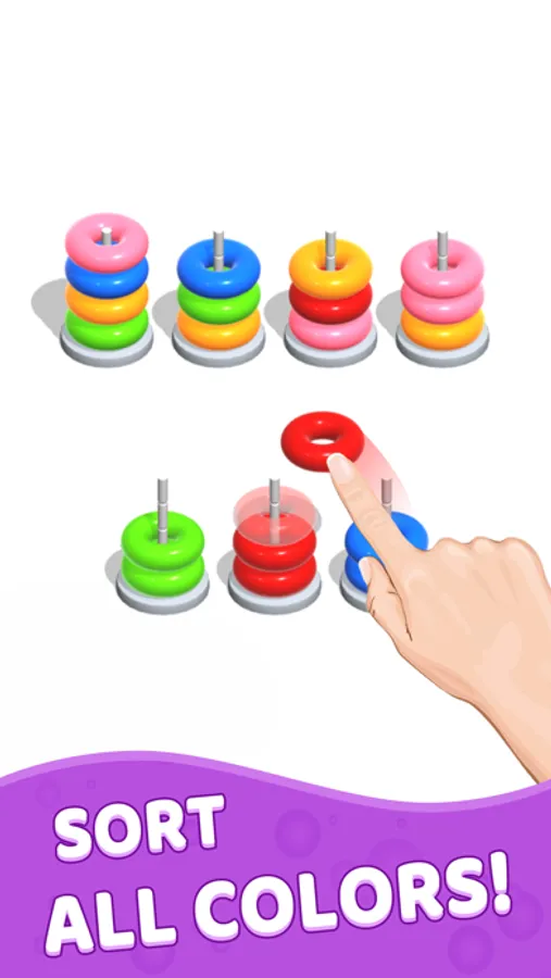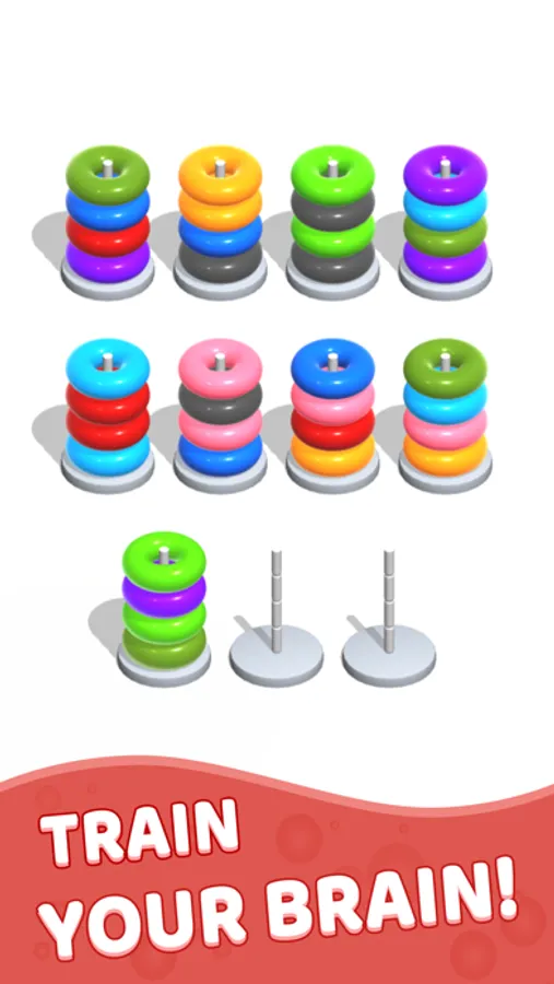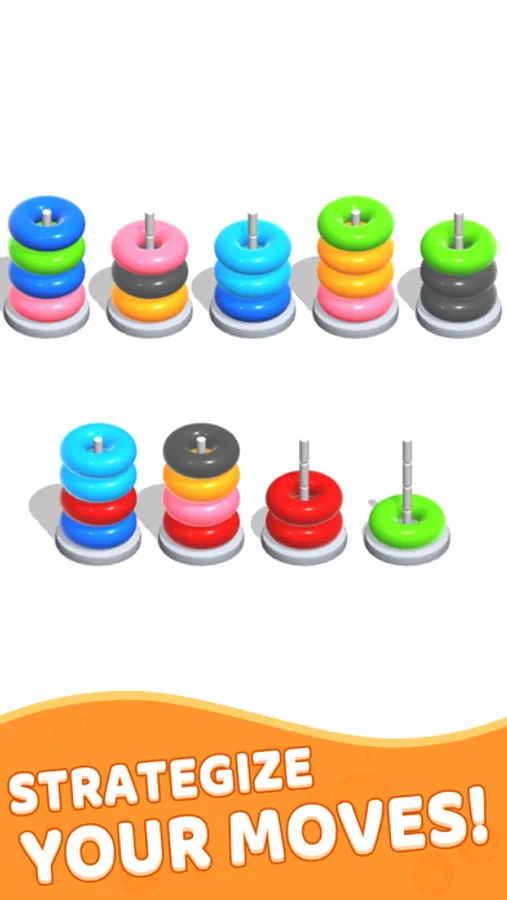 Color Hoop Stack is a classic addictive sort puzzle game. Solve the puzzle by sorting colorful hoops. Color Hoop Stack is a challenging yet relaxing and totally free sort puzzle game to exercise your brain!