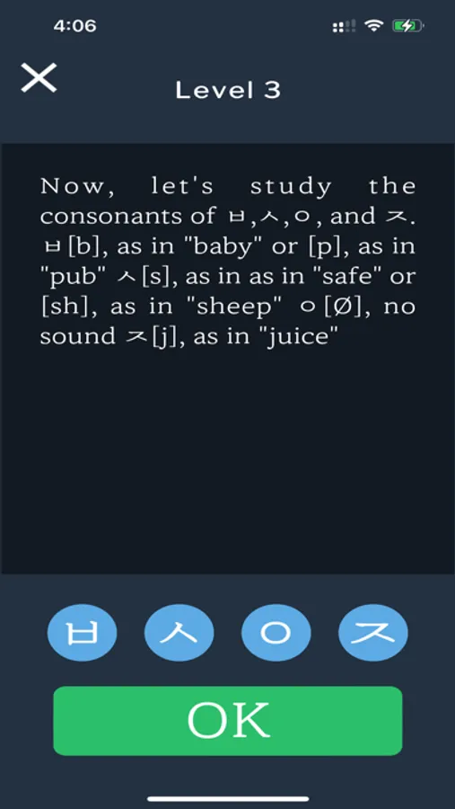 With 한글 도사(Hangul Dosa: K-Korean Master), you can easily learn from Korean alphabets to the real life expressions through playing game! No more tedious memorizing.