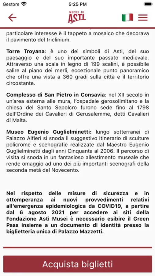L'applicazione è concepita per facilitare l'ingresso dei visitatori ai musei compresi nel sistema SmarTicket: Palazzo Mazzetti, Cripta di S. Anastasio, Palazzo Alfieri, Museo Guglielminetti, Domus Romana, Torre Troyana, Complesso di San Pietro in Consavia.