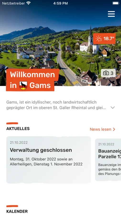 Mit der Gams App erkundest du alle Besonderheiten deines Wohnorts in einer einzigen App. Jetzt erfährst du alles über Gams in nur wenigen Klicks und weisst immer ganz genau, was gerade los ist.