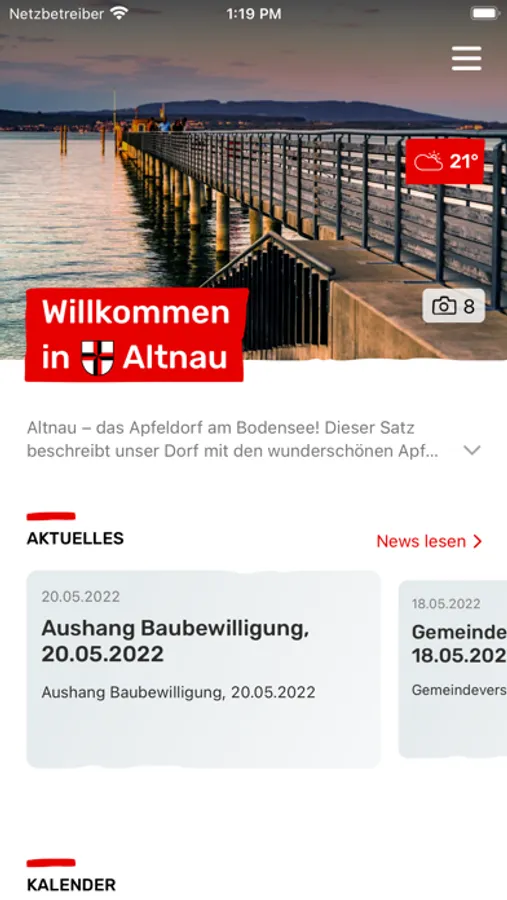 • Events: Immer wissen, was ansteht – verpasse kein Event mehr mit dem lokalen Veranstaltungskalender.