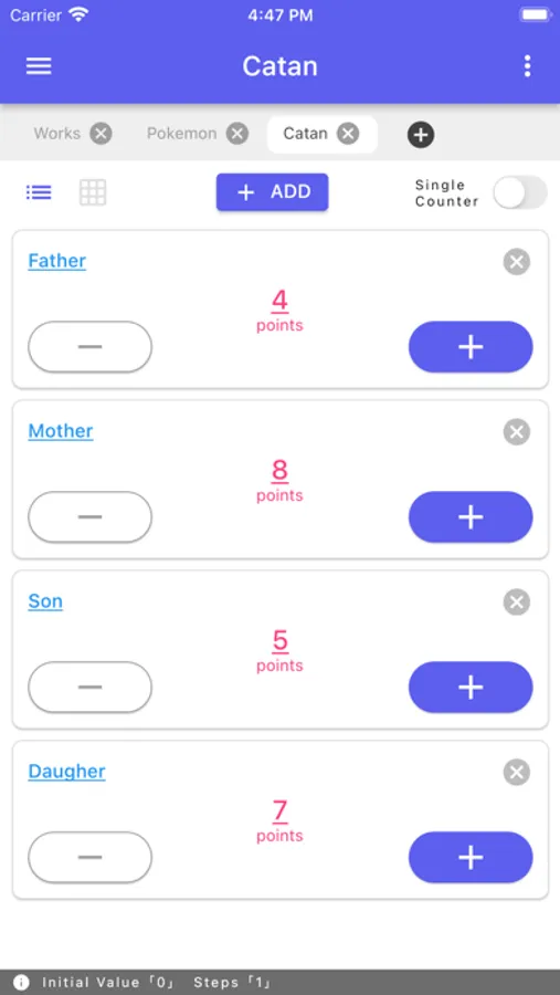 You can enter numbers directly without counting up, and you can also calculate and enter them. It can be used as a scoreboard or win-loss table for games.