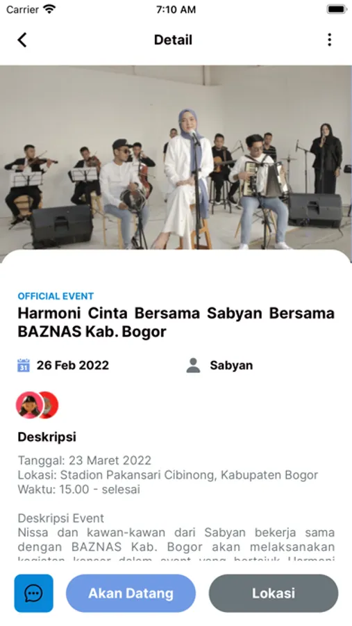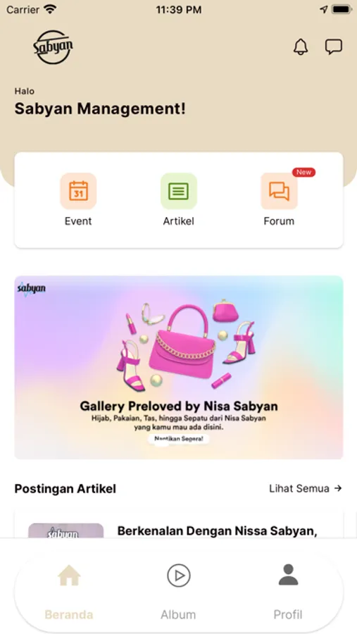 Sabyan Apps — Sabyan Apps merupakan platform grup musik Sabyan, yang beranggotakan Nissa, Ahmad Fairuz (Ayus), dan Sofwan Yusuf. Berdiri sejak tahun 2015, Sabyan, aktif mengeluarkan hits bernuansa religi yang familiar di masyarakat. Dengan jumlah pengikut media sosial sebanyak 2 juta followers, aplikasi Sabyan Apps lahir untuk mewadahi kebutuhan para fans agar dapat saling berinteraksi antarsatu dengan yang lainnya. Artikel; jadwal kegiatan event; forum; marketplace komunitas; grup chat; merupakan sekian banyak fitur yang bisa dimanfaatkan dalam platform ini.