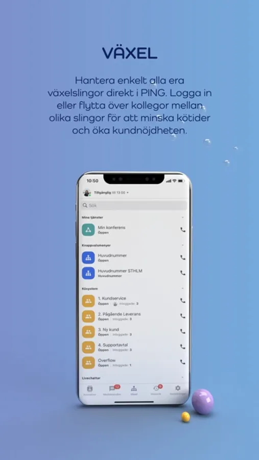 Vi har fyllt Pingaway växeln med alla funktioner Ni behöver för att ge era kunder ett snabbt och proffsigt bemötande. Växelns inbyggda tjänster säkerställer inte bara att era kunde alltid kopplas till rätt person, era kunder kan också lämna sitt nummer för att slippa stå i kö – eller varför inte förenkla samtalet med en CRM-plugin för att se vem som ringer innan ni svarar?