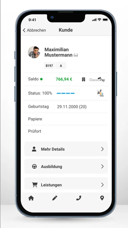 Fahrschulcockpit macht deine Fahrschulverwaltung geräuschloser! Onboarding, Faktura, Prüfungsplanung, Payment u.v.m: All die zentralen Aufgaben kundenorientierter Dienstleistung kannst du mit dem Ecosystem Fahrschulcockpit abbilden. Die Schülerwelt "drive.buzz" ist natürlich kostenfrei dabei und sichert dir durch Transparenz und einen direkten Broadcasting-Kanal zufriedene Kunden.