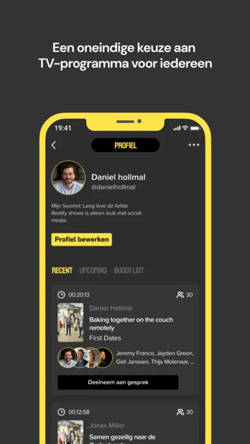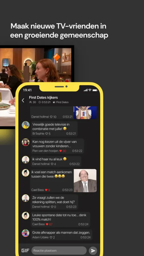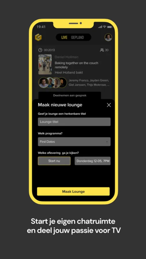 Maak je eigen chatruimte: Als er nog geen gesprek is over jouw favoriete TV-programma's, kun je gemakkelijk je eigen chatruimte starten zodat andere fans meteen met je mee kunnen kijken.