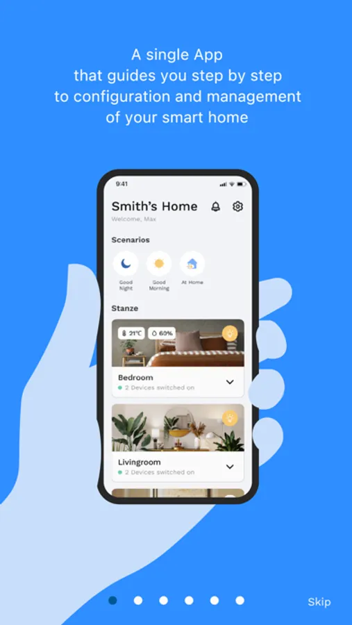 With Home Gateway App you can turn on, turn off or adjust the intensity of lights, move blinds, run scenarios, adjust temperature and more.
