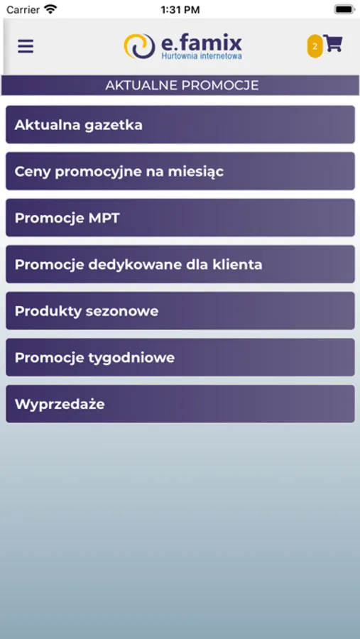 Aplikacja mobilna eHurt pozwala na pełny dostęp przez klienta do oferty handlowej firmy Famix, promocji, złożenia zamówienia, informacji o postępie złożonego zamówienia, rozrachunkach, możliwości pobrania faktury lub zgłoszenia reklamacji