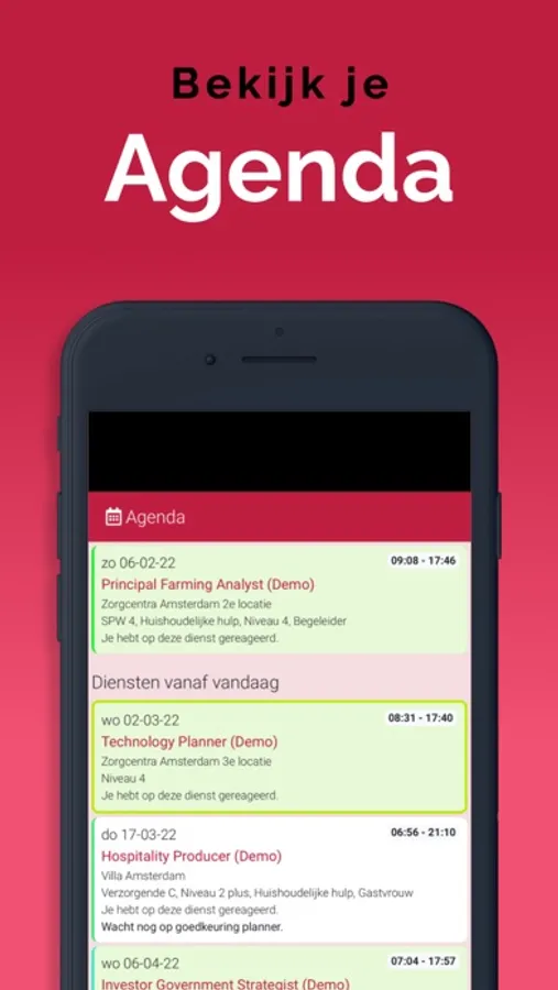 De App is gekoppeld aan het systeem waardoor informatie altijd up-to-date is, via een overzichtelijk dashboard. Bovendien komen belangrijke meldingen, als nieuw beschikbare opdrachten, via een push melding binnen op het apparaat. Zo zie je niets over het hoofd. Ook wijzigingen worden direct zichtbaar, ook in de agenda. Je bent dus altijd op de juiste plaats aanwezig.