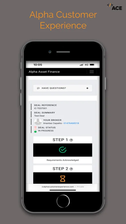 The Alpha Customer Experience is your safe and simple gateway for communicating with Alpha Asset Finance. With ACE, customers can easily and securely scan ID for facial recognition checks, and e-sign documentation.