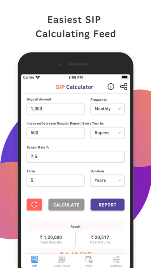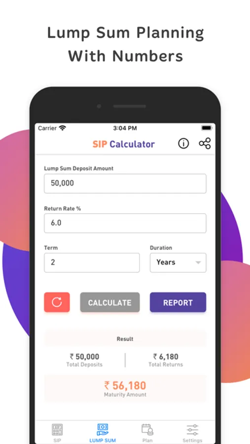 That’s set! The app will quickly estimate the total returns on SIP and maturity amount. Also, you can view SIP yearly and monthly reports for your lumpsum investment