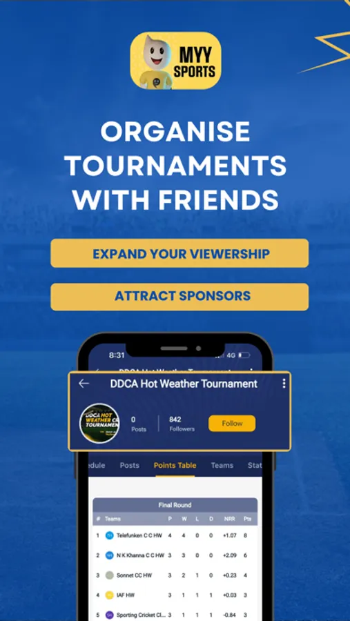 This is the app that brings together your family, friends and fans to cheer for you as you play Sports - whether for fun or for glory! Right from the gully to the biggest stadiums, MyySports is your companion as you grow your Sports career.
