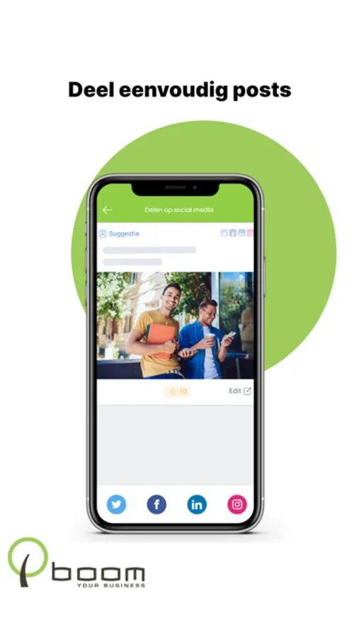 Het werkt heel eenvoudig. Jij legt je collega’s of andere stakeholders kant-en-klare berichten voor. Zij publiceren deze vervolgens met een druk op de knop (binnen de app) op hun persoonlijke kanalen of hun bedrijfskanalen. Vrijwillig natuurlijk. En zodra ze iets willen aanpassen, kan dat natuurlijk ook.