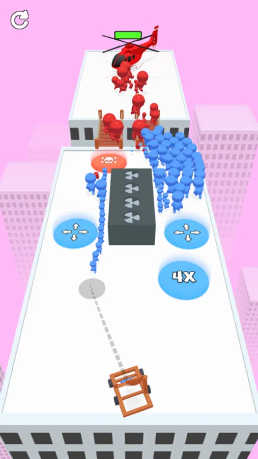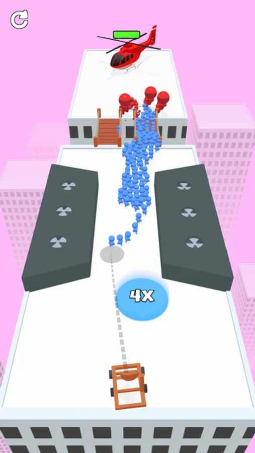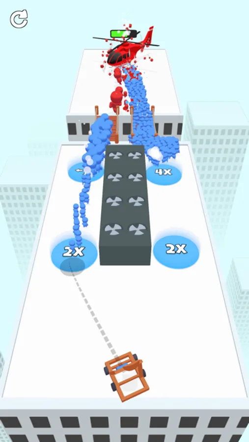 Aim and launch people to the best point. Increase your crowd and capture the helicopter.