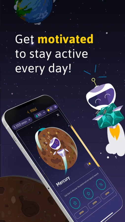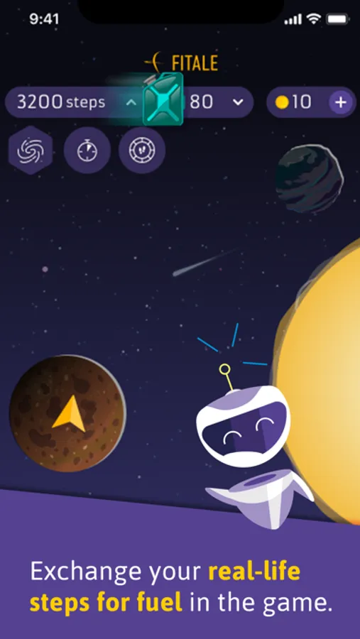 Walk and exchange your every step for fuel. Travel through space by walking on Earth, and explore secrets of each planet you visit. New, unexplored galaxies are waiting for you!