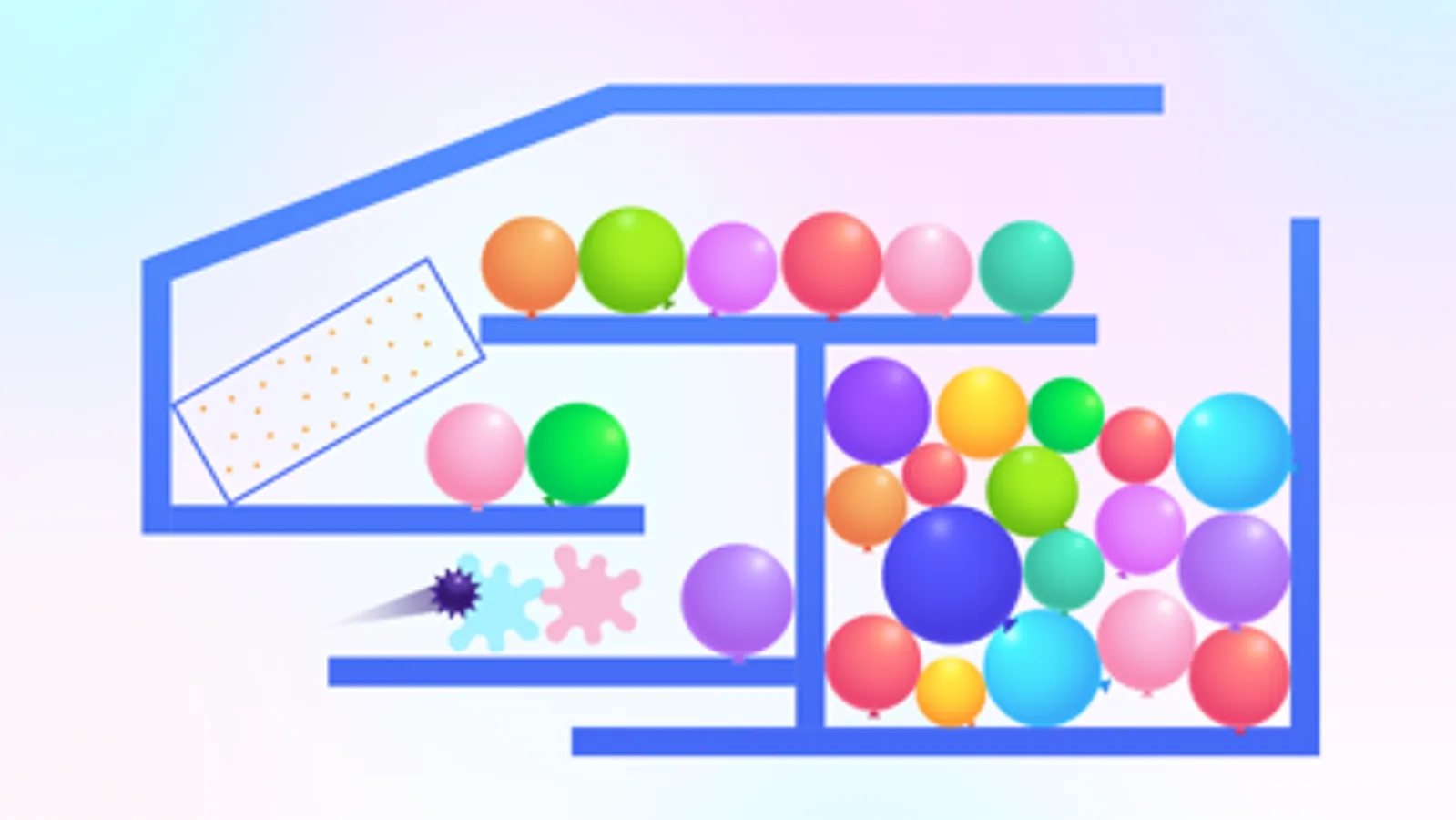 Thorn And Balloons is a very interesting casual game. In the game, you need to control the strength and angle to launch the thorn ball, the thorn ball will bounce and pop when it hits the wall, and all the balloons will be broken by rebounding to win.