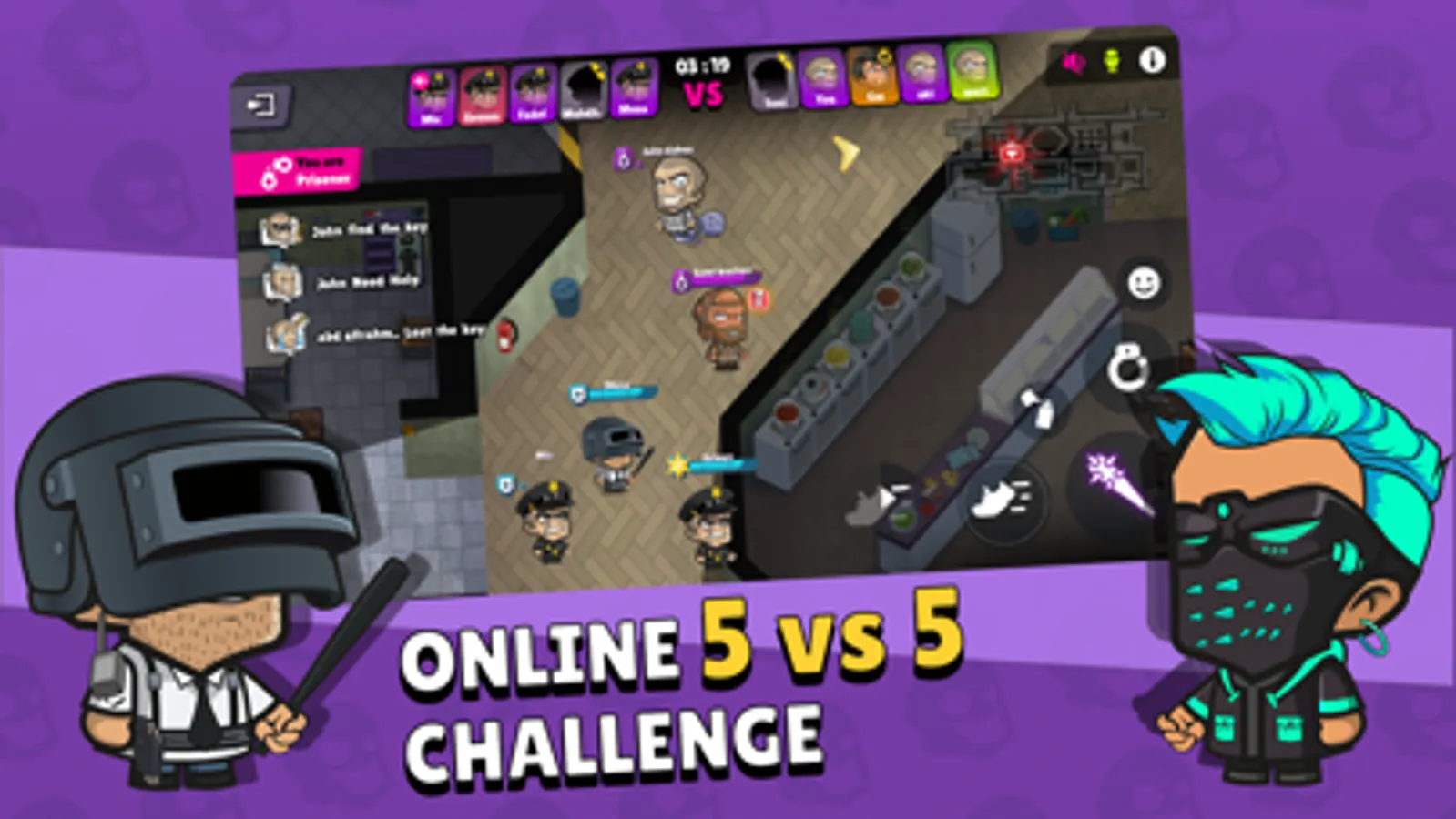 2- Police and Prisoner teams: The game's exciting structure includes Police and Prisoner teams. Whether you want to be the enforcer of the law or fight to prevent the prisoners from escaping, determine your winning strategy.