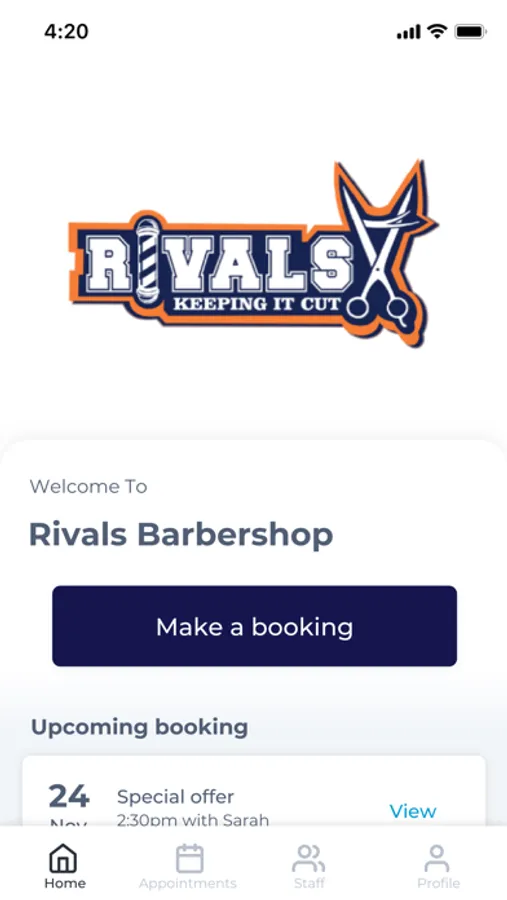The Rivals Barbershop app makes booking your appointments and managing your loyalty points even easier. You're just a few taps away from feeling good and looking great!