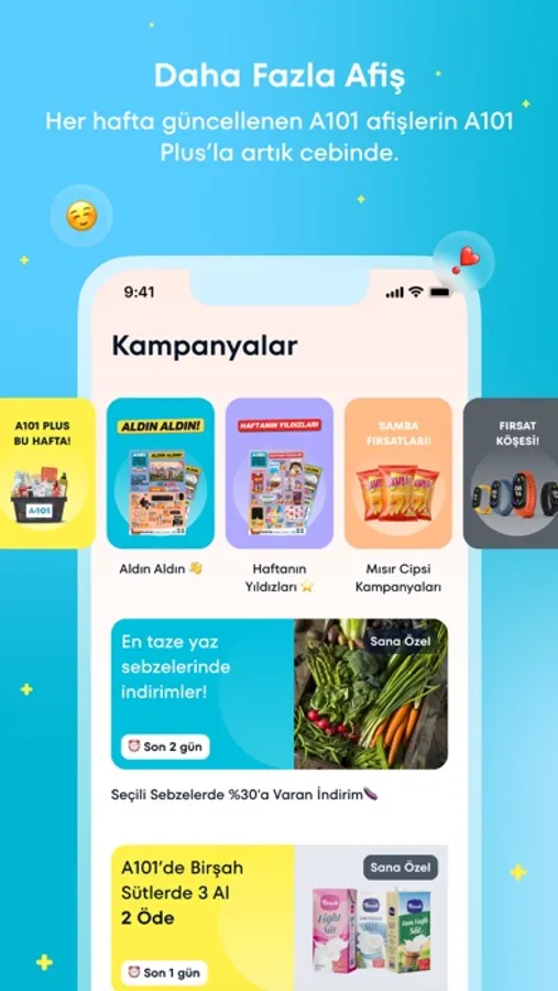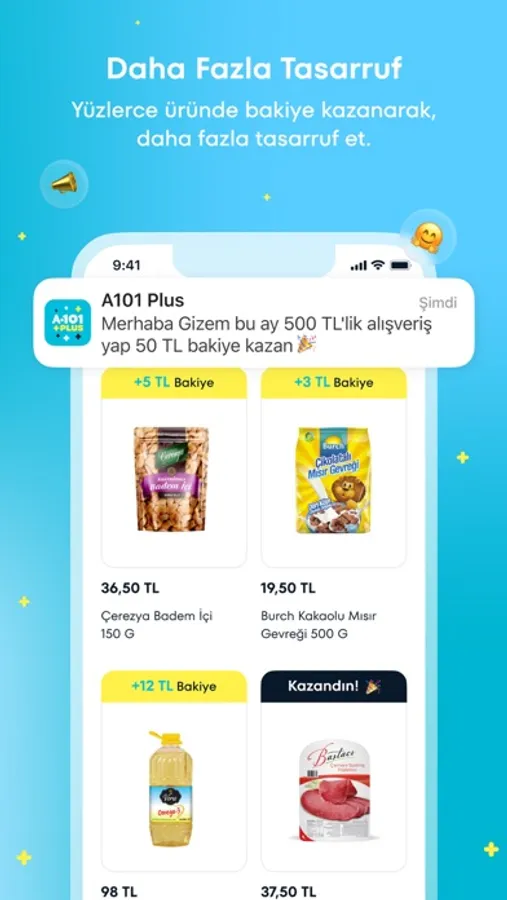 Bir uygulama hayal et; seni tanıyan, sevdiğin ürünlerde kampanya yapan, bol bol indirim sunan ve bakiye kazandıran. İŞTE KARŞINDA A101 Plus!