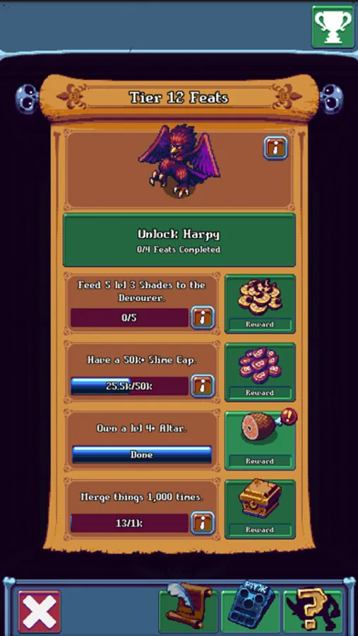 Complete tasks to unlock new stations and equipment… graves, altars, fridges and even a bathtub to hold excess slime. New stations will let you summon new, stronger (and even more tasty) creatures. Manage your lair and your underlings to maximize your resource generation.