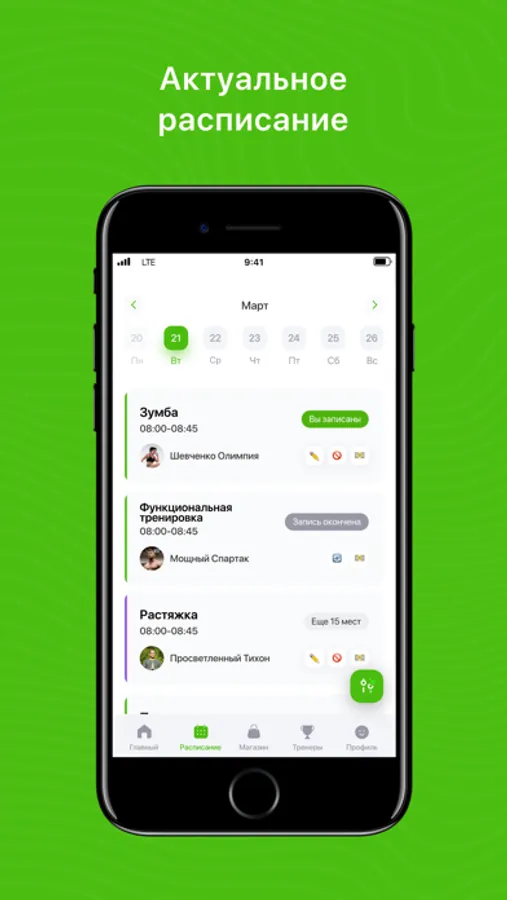- Посмотреть актуальное расписание тренировок;