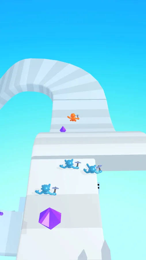 Careful on the way down though, as the path you follow is full of twists, turns, cliffs and jumps! You'll need to make good use of your ice pick as you navigate through dynamic levels. Others will be after you, too! Make sure you pass them all and become the king of the hill!