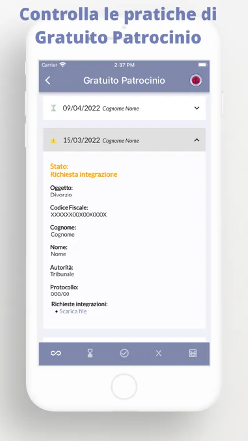 • controllare lo stato di avanzamento delle pratiche di Gratuito Patrocinio;