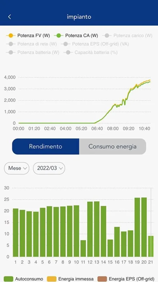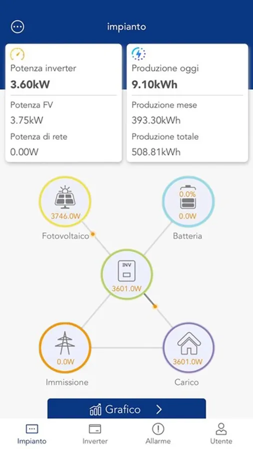 L'applicazione gratuita fornisce una panoramica sui valori di conversione dell'inverter, statistiche e comparazioni su dati energetici, funzioni di notifica allarmi e possibili soluzioni.