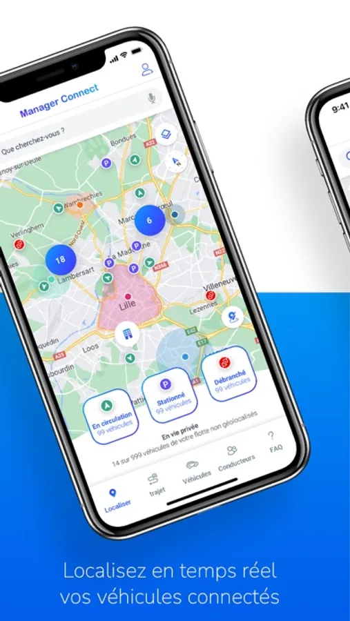 - Suivez les véhicules de votre flotte sur une carte
