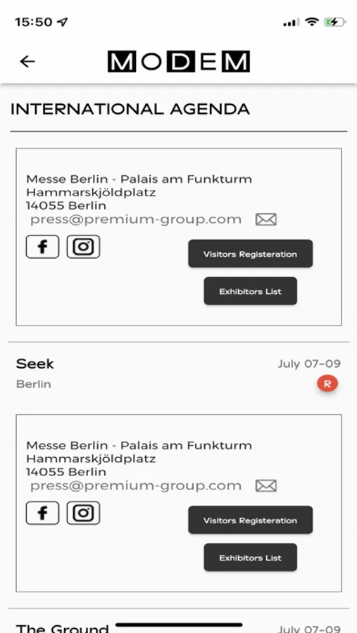 “Modem - The Fashion Network” is a free app developed to help professionals to navigate international events and Art, Design and Fashion Weeks worldwide.