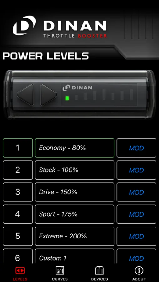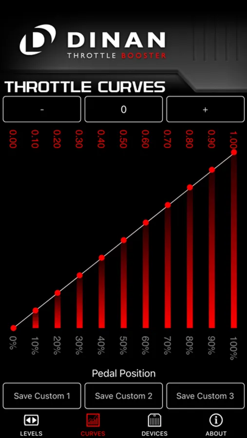 This Bluetooth app provides full control over the Dinan Throttle Booster. You will have the ability to instantly select from 5 preset throttle curves or customize your own throttle curve and save it into the device so you can alternate between custom curves and preset curves in seconds. The Dinan Throttle Booster app will find your device via Bluetooth and pairs in no time.
