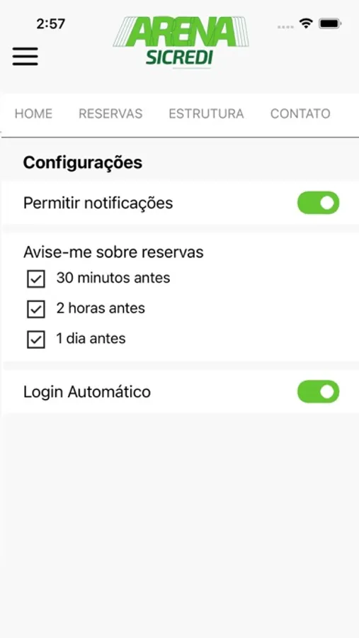 Confira pelo app nossas informações de estrutura, localização e contato com o centro esportivo.