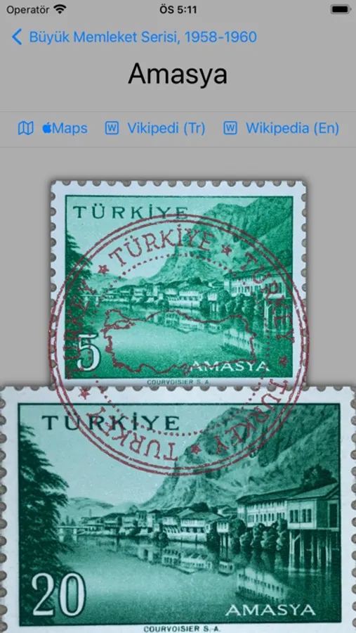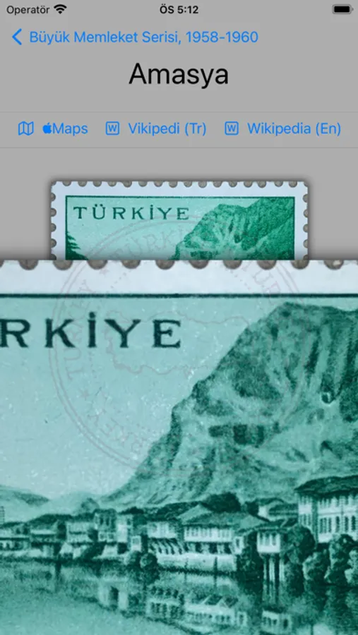 1958 - 1960 yılları arasında sürümü yapılan Memleket Pul Serisi gösterimi