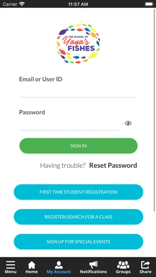 The School of Yaya's Fishes app allows you to manage your account with ease, register for classes, pay, and view merchandise. You will also receive important notifications about class changes, closings, registration openings, special announcements, and upcoming events.