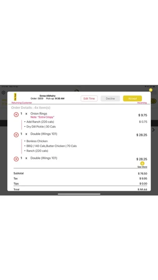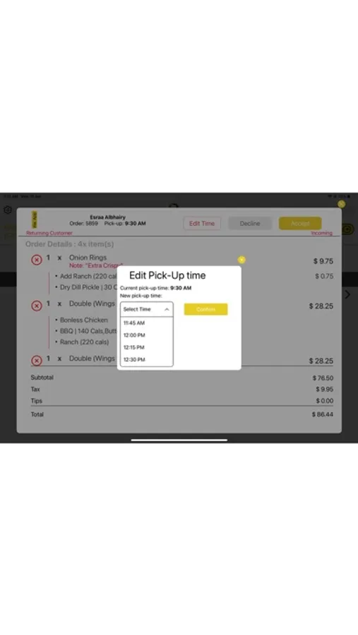 • Adjusting order time after accepting it: You can delay or adjust orders after accepting it if you are running behind