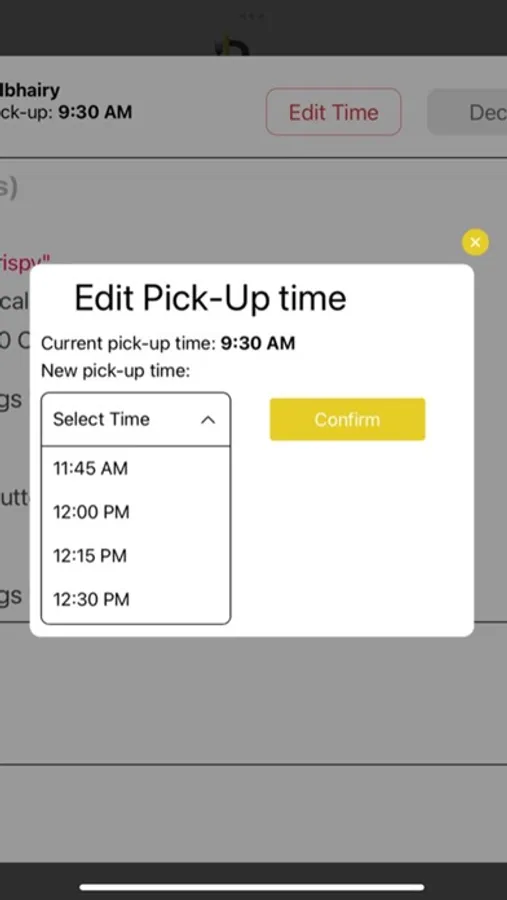 • Edit orders time : Based on your availability you can now edit your customers’ orders time before you accept it