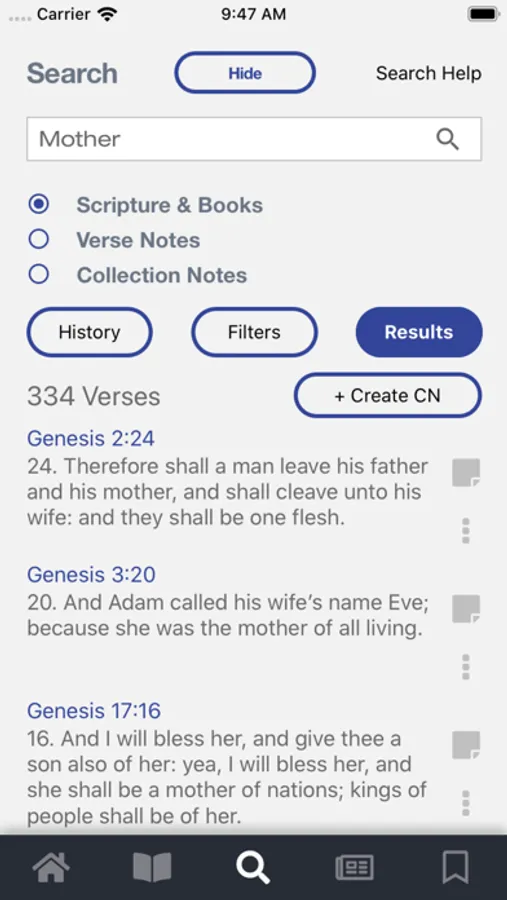 As early release software, Scripture Notes is a stable platform but has limited features when compared to the desktop version. It is already very powerful with Boolean searches and the ability to create Collection Notes, but we are working to make it the best mobile scripture study app available. There are many more features to come.