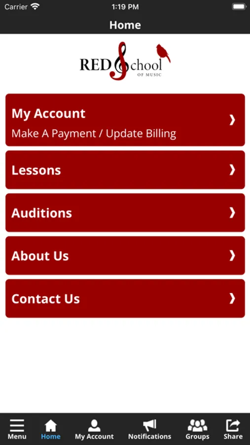 The Red School of Music app allows you to manage your account with ease, register for classes and special events, submit absences, and contact your teachers. You'll also receive important notifications about class changes, closings, registration openings, special announcements, and upcoming events.