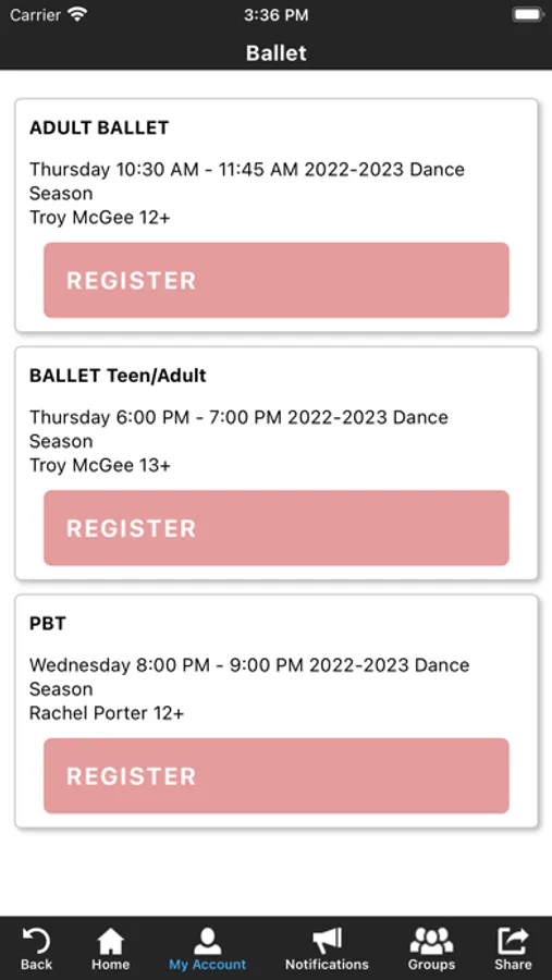 The Westside Studio app allows you to manage your account with ease, register for classes and special events. You'll also receive important notifications about class changes, closings, registration openings, special announcements, and upcoming events.