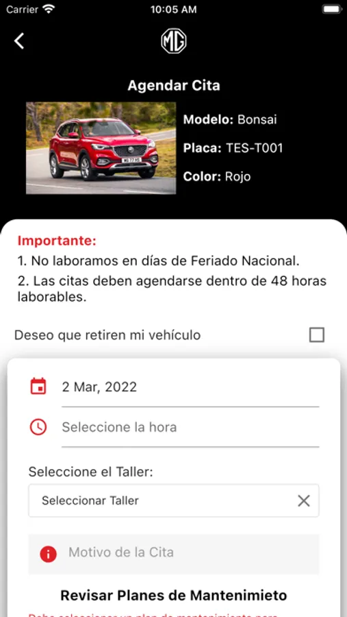 Aplicación para separar citas y llevar el control de mantenimiento de tu MG