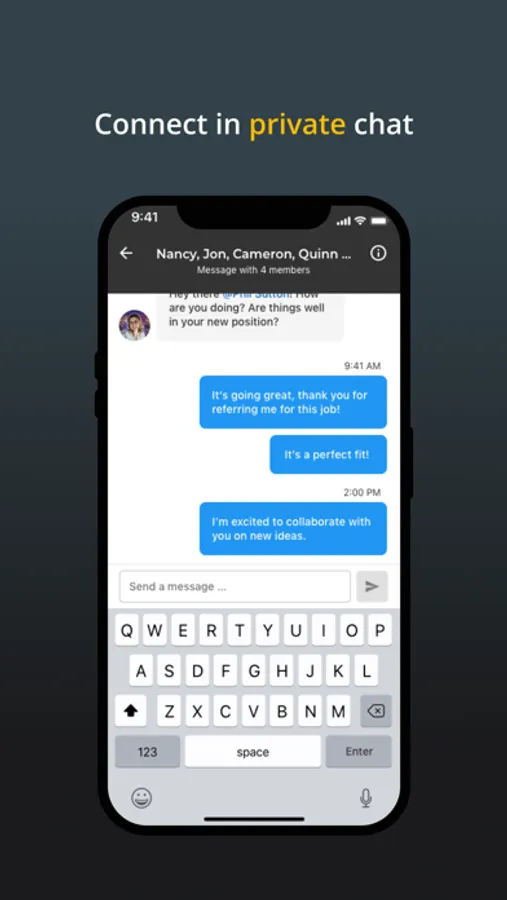 Search or browse to discover new connections, connect directly via 1-1 chat, or follow members of your community.