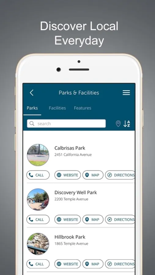 The Live, Work, Play, and Government sections allow you to have all the important contact and resource information in your city with the click of a button. Find parks, facilities, and points of interest along with information, phone numbers, maps, and directions.