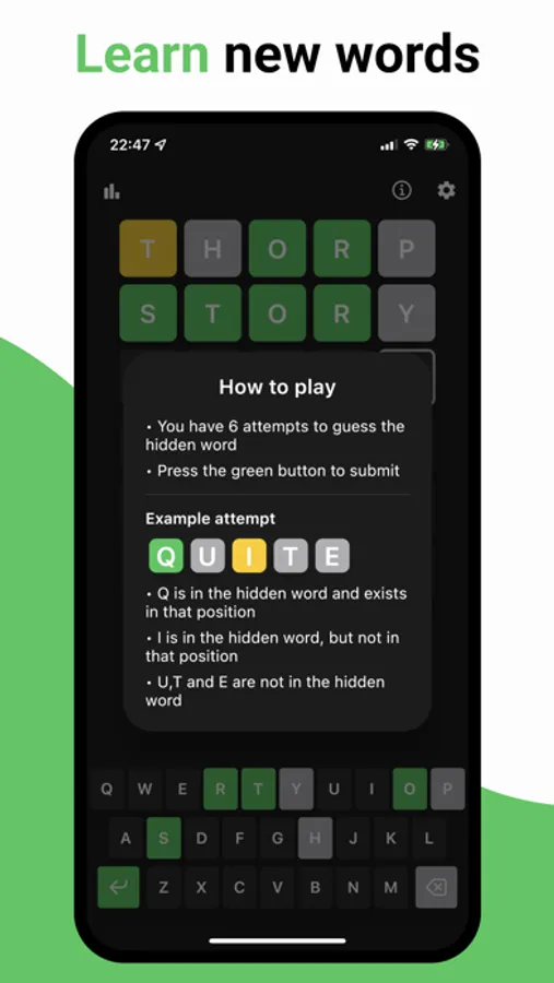 Based on wordle, worg is a unlimited word guessing game where you have six attempts to guess the hidden word.