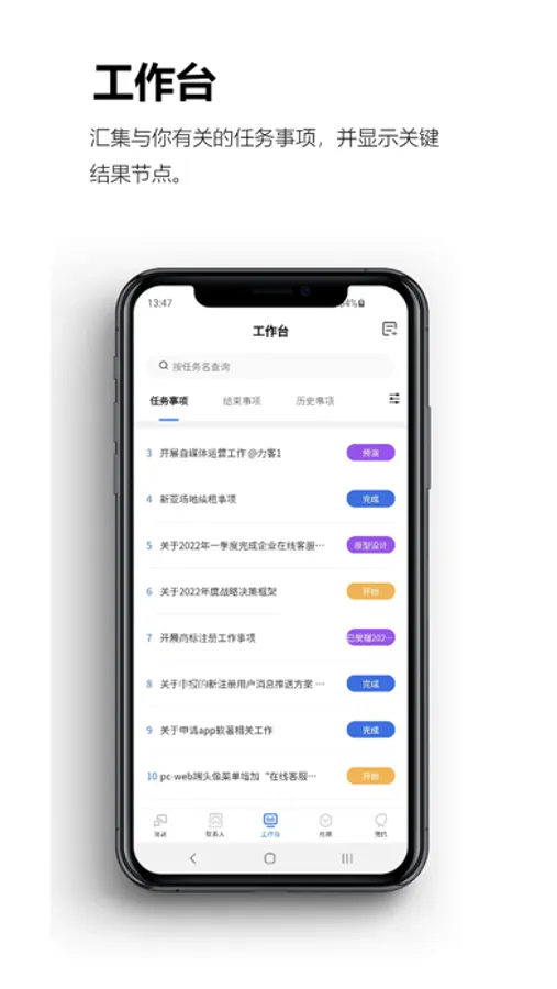 (应用示例:任何为达成目标愿景而展开协作或独立的执行活动,都可具化为任务事项。轻松和你的合作伙伴自由协同。)