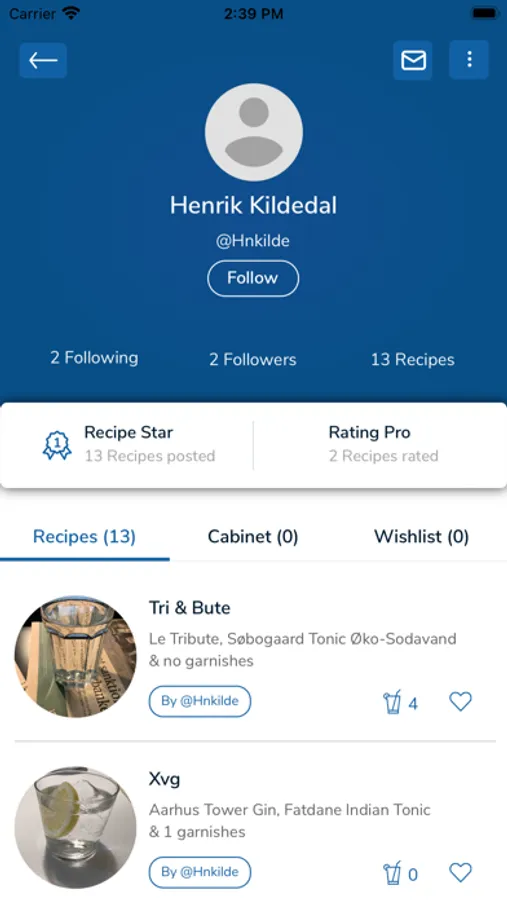 You can rate gin, tonic and recipes and of course see how others have rated them.