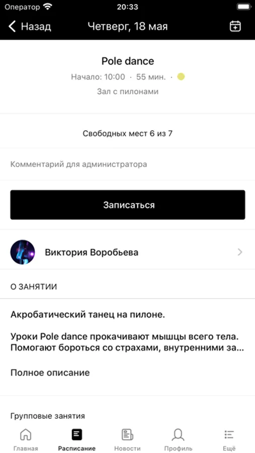 С помощью приложения вы можете записываться на тренировки, следить за новостями и оперативно получать информацию об изменениях в расписании и специальные предложения