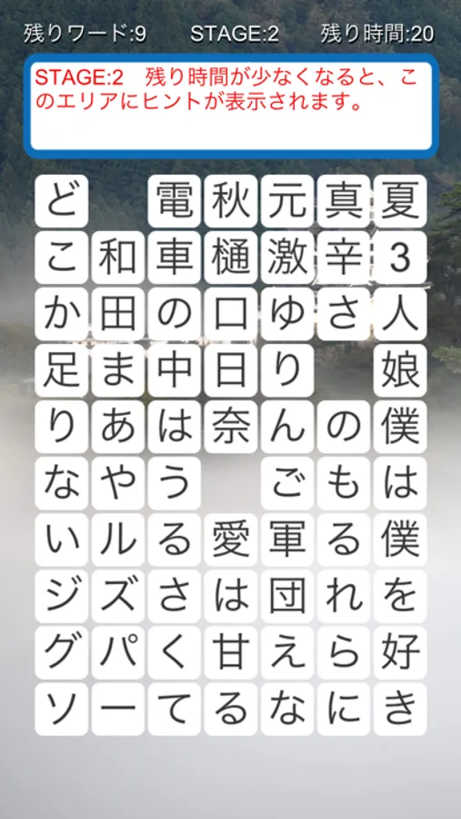 残り時間が少なくなると、ヒントエリアにヒントが表示されます。