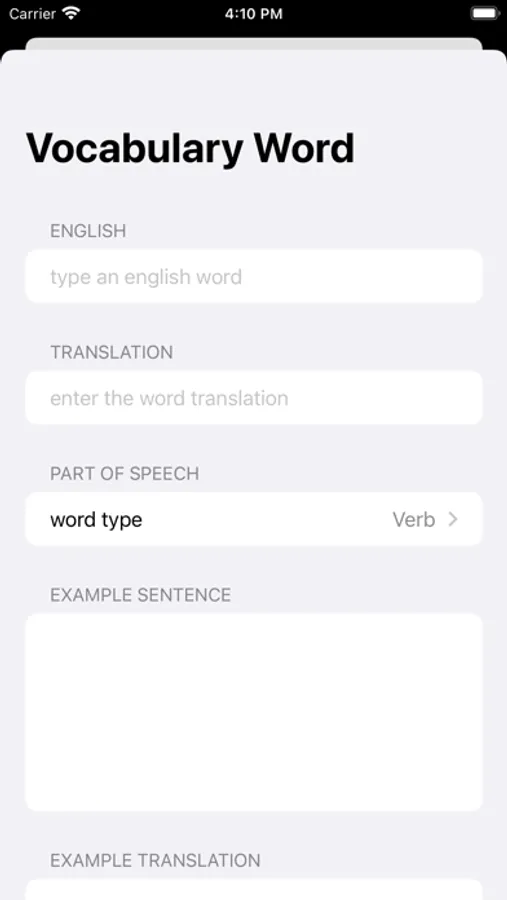 The app is for people in non-English speaking countries. With this app, you can create your own English dictionary. Whenever you encounter unfamiliar English words, just complete the form in the app and words will be saved in the app. For accumulating words over a long period, It has become more fun than just a dictionary.