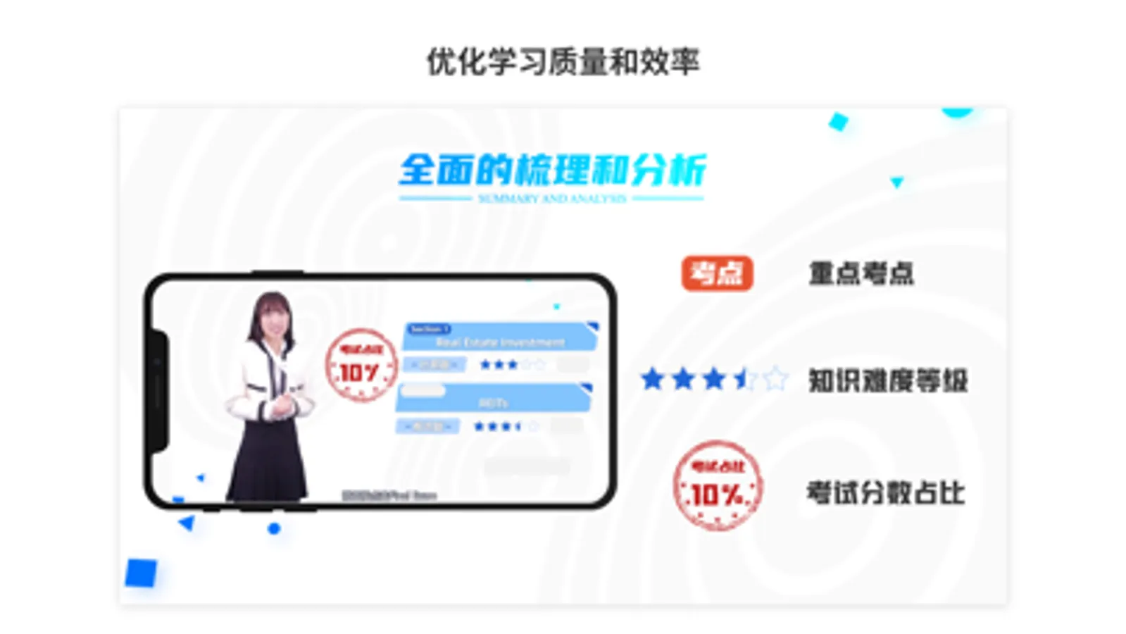 2、优化学习质量和效率帮大家总结了重点考点、知识难度等级、考试分数占比等。学习重点一目了然,极度优化学习的质量和效率;