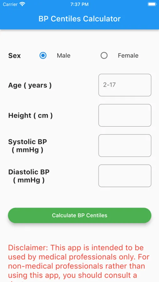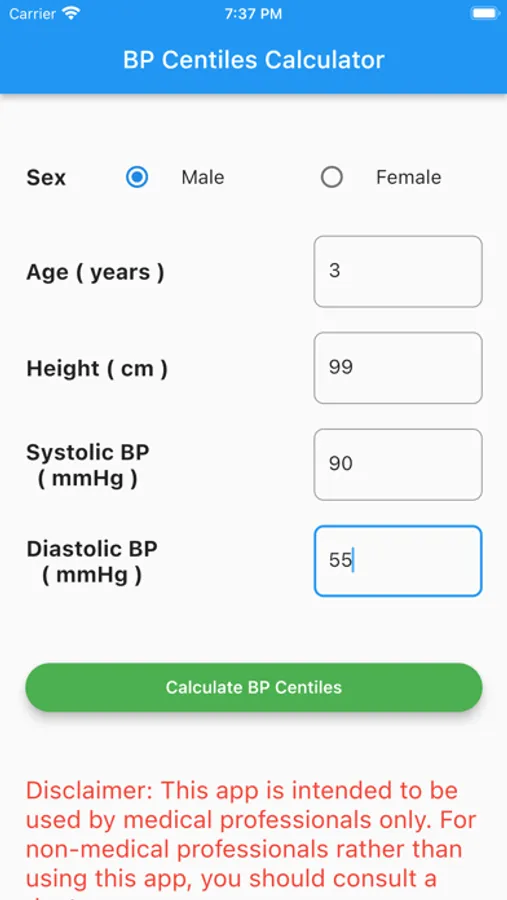 BP Centiles Calculator app provides both BP centiles for children within 5 seconds. Doctors only needs to enter BP and height of child.